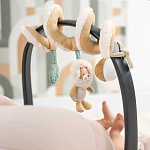 - легко крепится к манежу, кроватке или автокреслу с помощью лент;