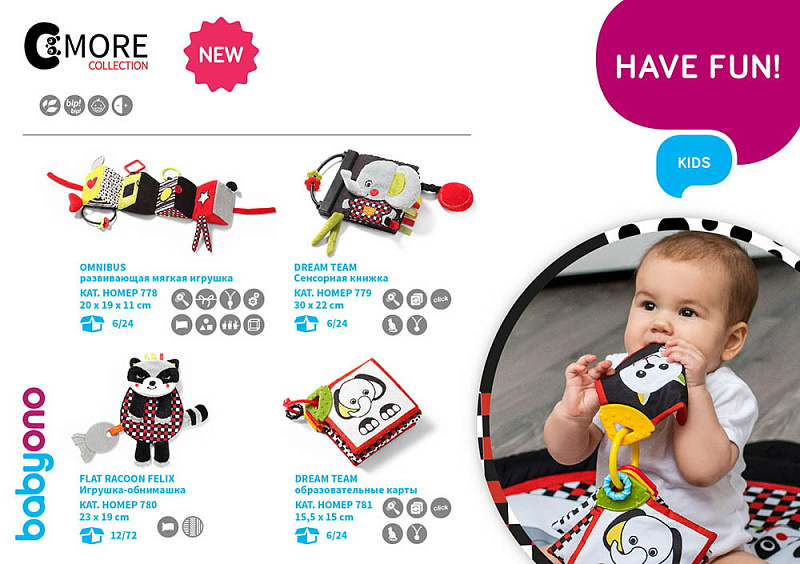 - развивает когнитивные навыки посредством стимулирующих текстур и звуков