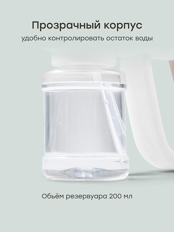 Прозрачный резервуар - емкость объемом 200 мл позволяет легко следить за остатком воды, чтобы вовремя совершить «перезарядку»