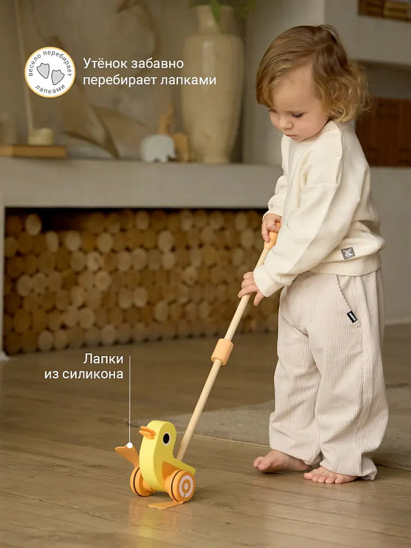 При ходьбе с утёнком ребёнок развивает координацию движений, укрепляет мышцы и учится держать равновесие. Озорной дизайн и плавные линии игрушки привлекают внимание детей. Игрушка станет идеальным подарком для малышей, которые только учатся ходить. Утёнок-каталка edda — это первый шаг к большим открытиям.