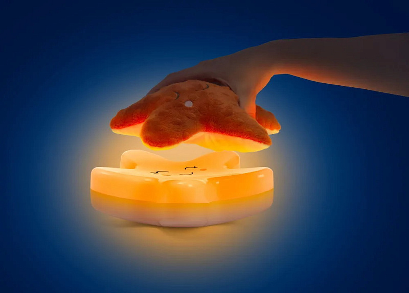Ночник включается автоматически, когда мягкая звезда соприкасается с пластиковой — благодаря магнитной системе.
