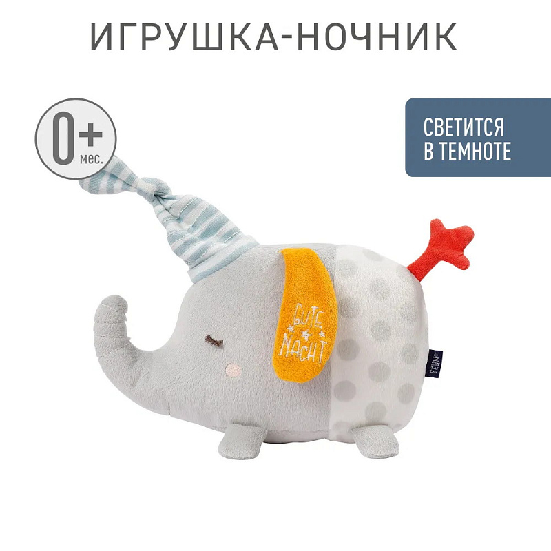 Слоник со светящимися элементами и блоком мягкой подсветки поможет малышу избавиться от страха темноты.