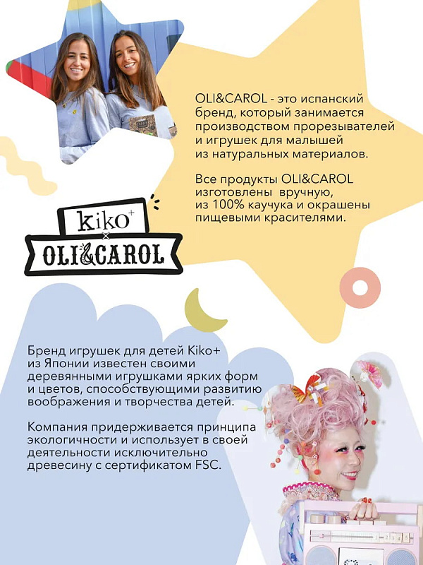 OLI&СAROL – молодой и успешный испанский бренд, специализирующийся на разработке прорезывателей и игрушек из натуральных материалов.