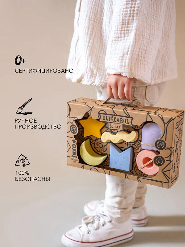 Коллекция интерактивных геометрических игрушек-прорезывателей, созданная в коллаборации испанского бренда OLI&СAROL и японского бренда KIKO+.