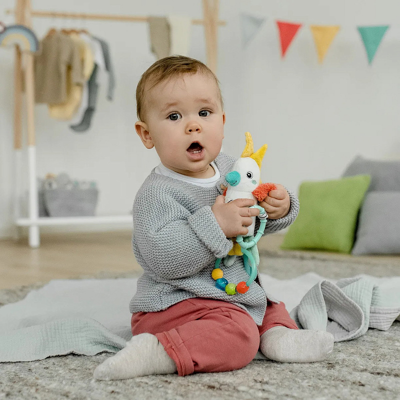 Веселый какаду из коллекции DoBabyDoo – это интерактивная развивающая игрушка для детей от 3 месяцев. За колечко игрушку можно подвесить в кроватку, коляску или автокресло. Малыш будет с удовольствием играть дома, на прогулке или в дороге!