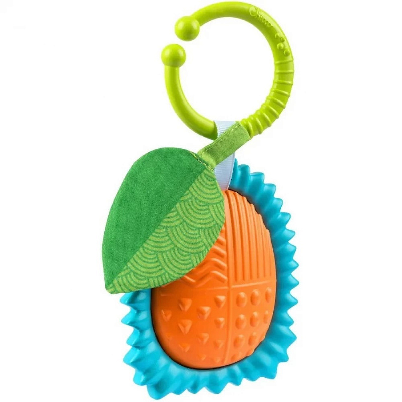 Потрогай и погрызи погремушку-прорезыватель, чтобы познакомиться с разнообразными текстурами, а также развить тактильные навыки и мелкую моторику