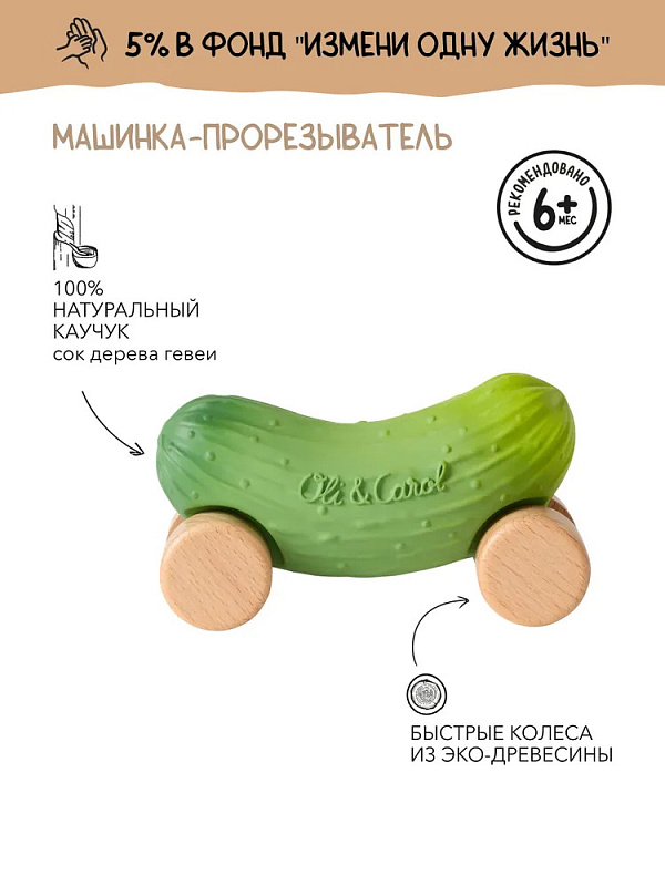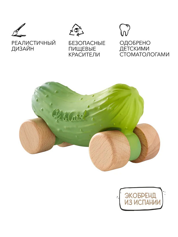 Игрушка-прорезыватель на деревянных колёсах Oli&Carol Машинка Pepino the CucumberНет оценокХарактеристики