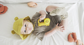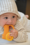 Так как в игрушке-прорезывателе нет отверстий, она подходит для игр во время купания. Благодаря своей форме она легко крепится к держателю для пустышки.