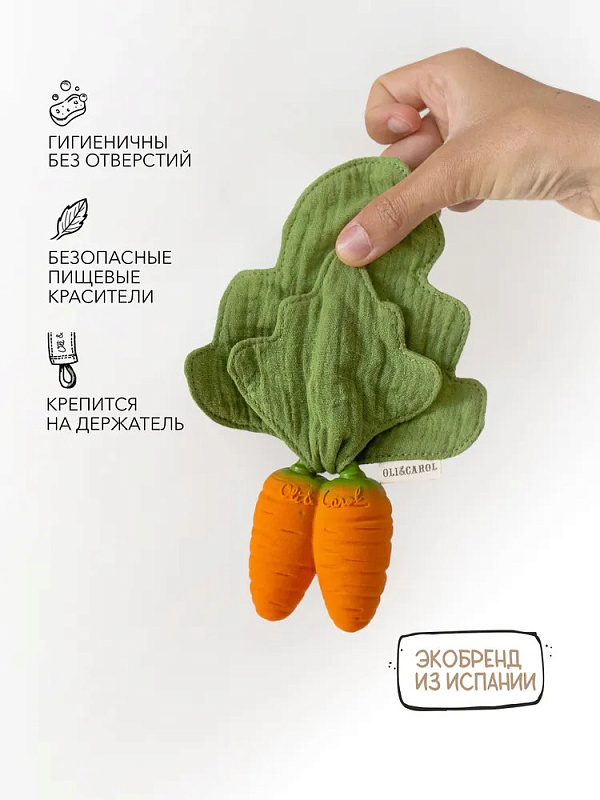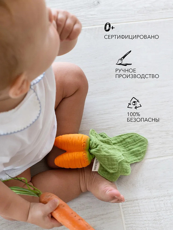 Прорезыватели из коллекции MINIDOUDOU-TEETHER от бренда Oli&Carol в виде популярных овощей и фруктов помогут малышу чувствовать себя максимально комфортно в период прорезывания зубов. Мягкий каучук хорошо массирует дёсны, платочек спасает от обильного слюноотделения, реалистичный дизайн и фактура способствуют сенсорному развитию малыша.