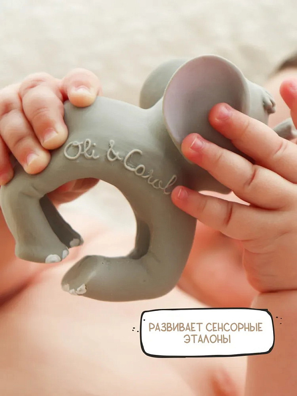 Оригинальный каучуковый браслет-прорезыватель в виде забавного слоника.