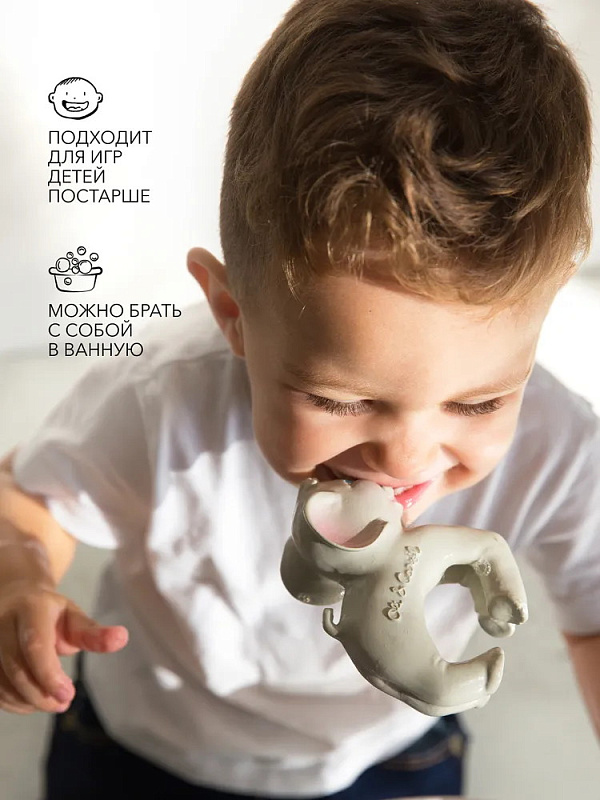 Натуральный каучук (из сока дерева гевеи) идеально подходит для массажа дёсен в период прорезывания зубов, оригинальный дизайн развивает воображение и мелкую моторику.