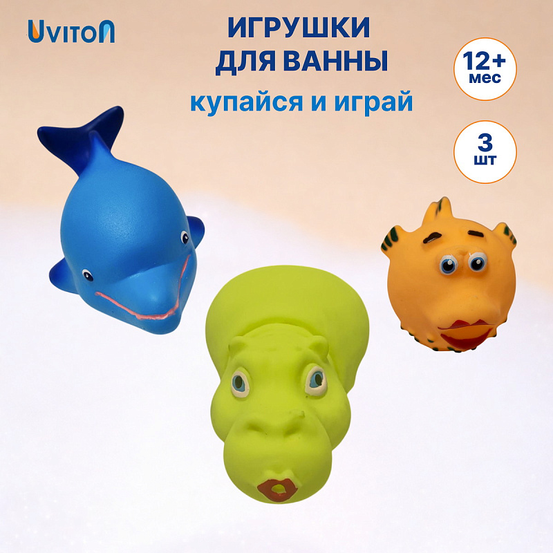 Игрушки для купания Uviton Дельфин, Бегемотик, Рыбка 3 шт 0085/01