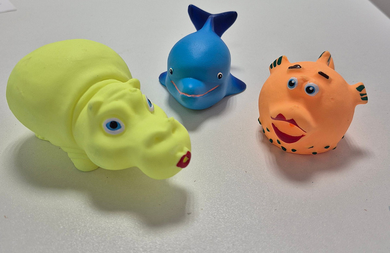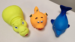 Перед первым применением промойте резиновые игрушки для купания теплой водой с детским мылом.