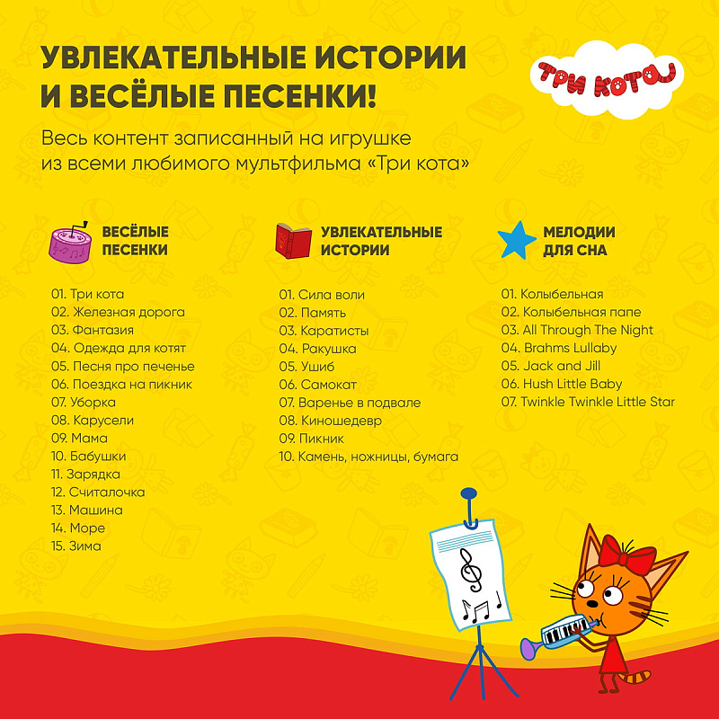 - Певица и чтец. 15 песенок и 10 сказок из «Трёх котов» на борту. И игры ещё.