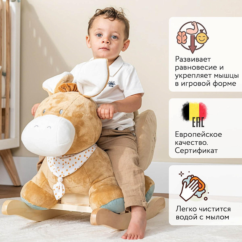 На мягкой качалке с ремнями безопасности малыши могут беззаботно покачиваться в любую погоду и весело проводить время. Деревянные ручки, идеально адаптированные к ручкам маленьких детей, и особенно широкое сиденье обеспечивают комфорт и безопасность. Качалка также тренирует у вашего ребенка чувство равновесия и подвижность.