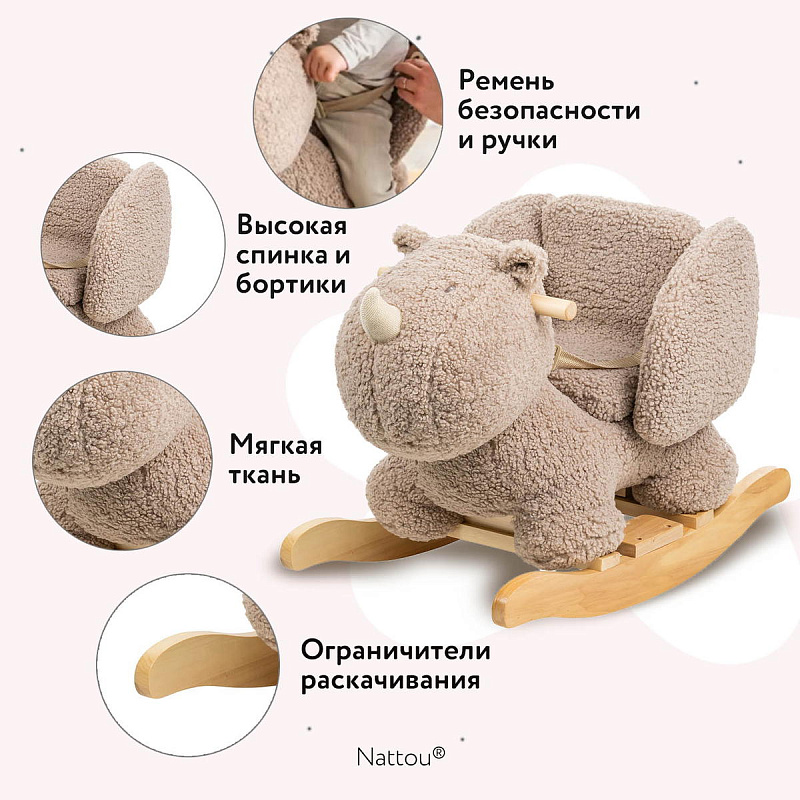 На мягкой качалке с ремнями безопасности малыши могут беззаботно покачиваться в любую погоду и весело проводить время. Деревянные ручки, идеально адаптированные к ручкам маленьких детей, и особенно широкое сиденье обеспечивают комфорт и безопасность. Качалка также тренирует у вашего ребенка чувство равновесия и подвижность.