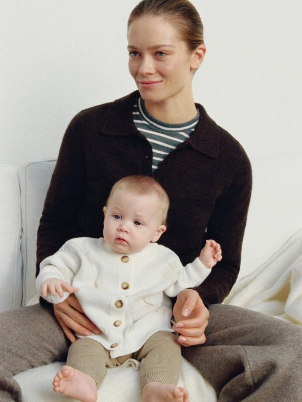 Свободный крой позволяет носить кардиган на вырост, подкатив рукава. Благодаря качественной хлопковой пряже он не растянется и не потеряет мягкость после нескольких лет носки.