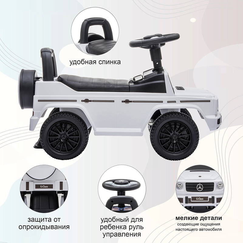 Sweet Baby Каталка Mercedes-Benz GD350 - отличная игрушка-машинка для общего физического развития, укрепления мышц, улучшающая координацию и моторику. Каталка рассчитана на детей с года до 3-х лет. Малыши, которые только учатся ходить, смогут держаться за спинку и делать свои первые шаги. Дети постарше смогут отталкиваться ножками и передвигаться самостоятельно. Каталка имеет музыкальный руль. Так первое путешествие станет намного интереснее! Под сиденьем предусмотрен вместительный отсек для игрушек.