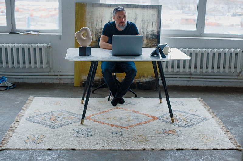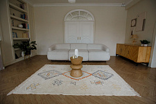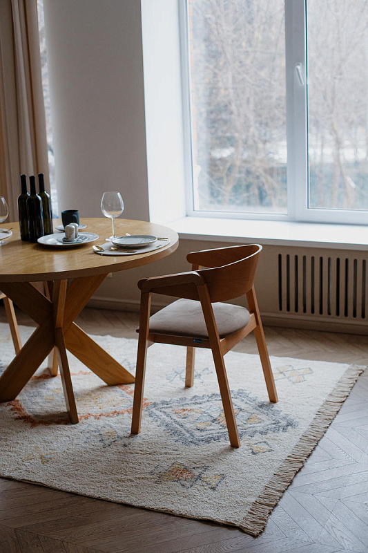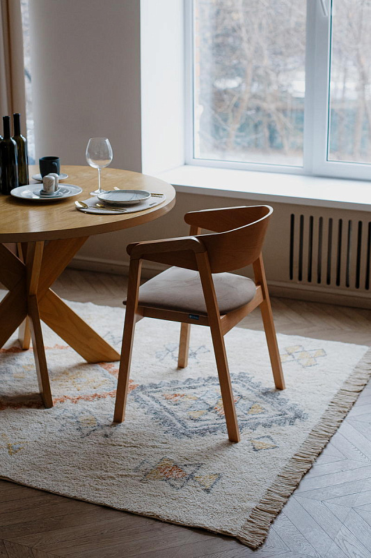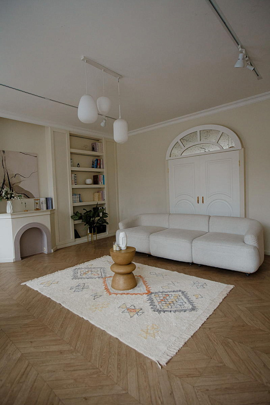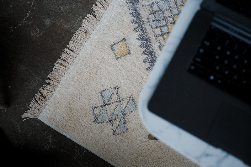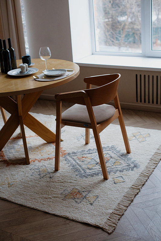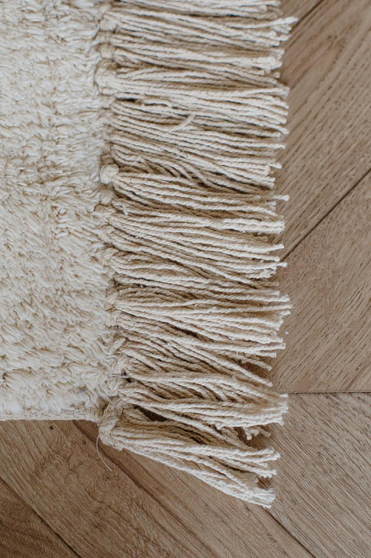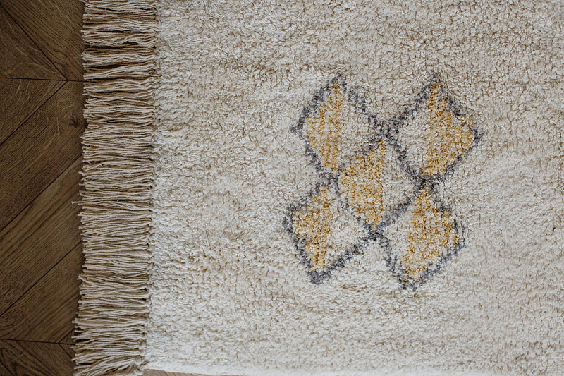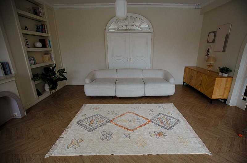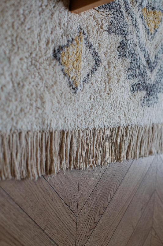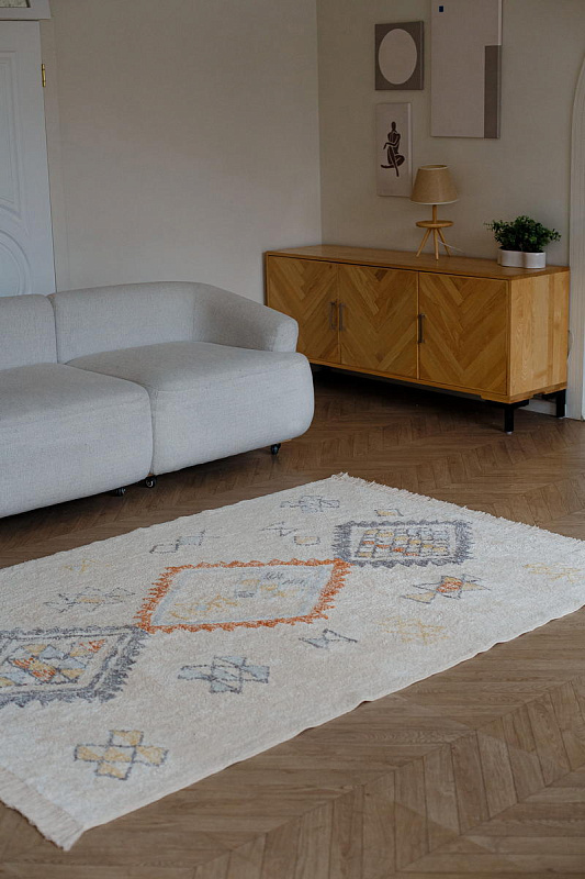 Хлопковый ковер AKVETE от Lillaland - это универсальное решение для любого интерьера. Его нейтральная цветовая гамма и ненавязчивый геометрический узор позволяют легко сочетать его с различными стилями мебели и декора.