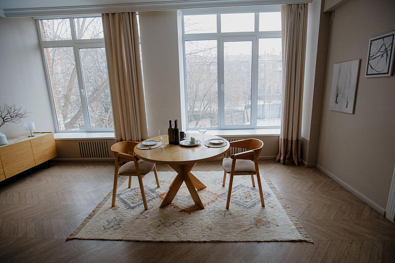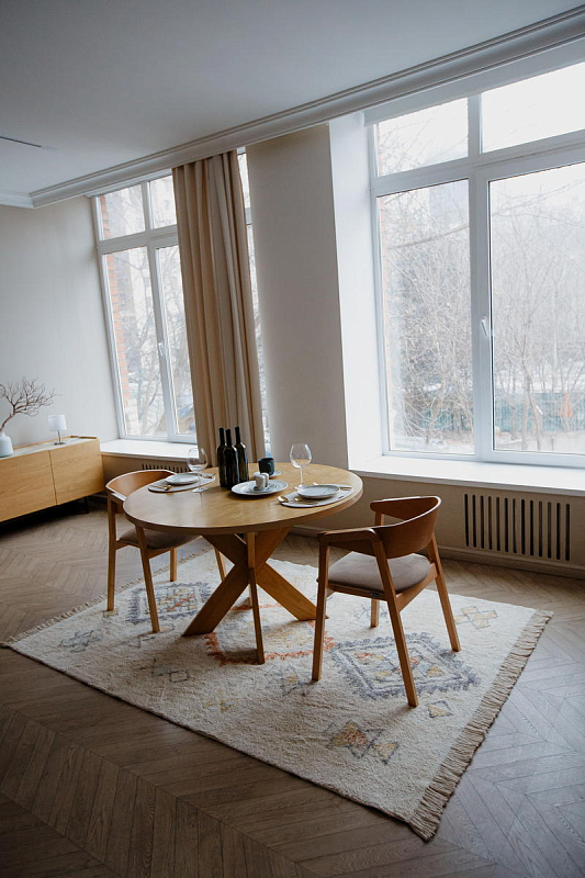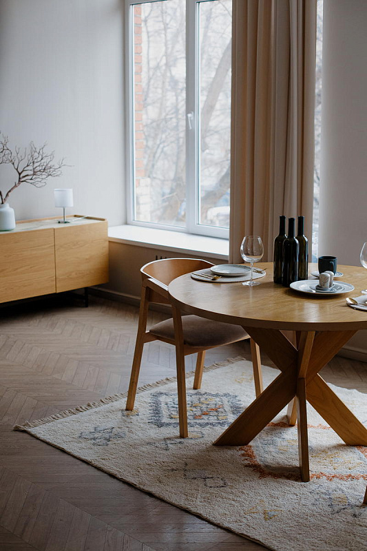 Мягкий и прочный, AKVETE идеально подойдет для зон с высокой проходимостью, таких как гостиная или столовая. Этот ковер легко чистить и поддерживать в хорошем состоянии, что делает его практичным выбором для современного дома.