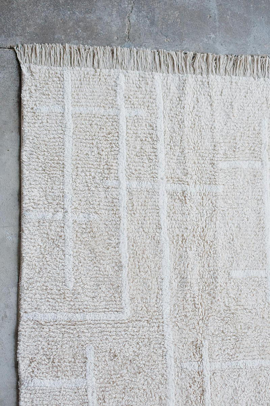 Его сдержанный геометрический узор привнесет нотку современного минимализма, гармонично сочетаясь с различными стилями интерьера. Нейтральная цветовая палитра ковра MATIS от Lillaland позволяет ему легко интегрироваться в любое пространство, добавляя ему тепла и изысканности. Почувствуйте комфорт и стиль под ногами с хлопковым ковром MATIS и превратите свой дом в оазис релаксации и гармонии. Этот ковер станет прекрасным дополнением для гостиной, спальни или кабинета, добавляя нотку утонченности и комфорта. Завершающие штрихи в виде деликатной бахромы добавляют ковру индивидуальности и очарования.