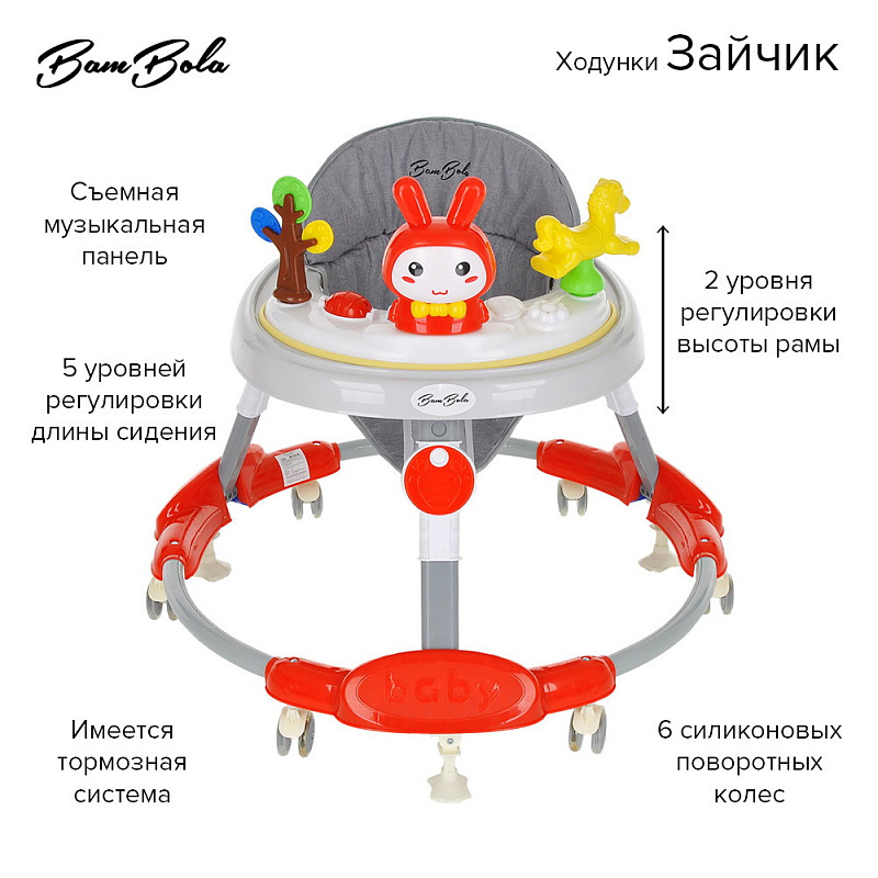 Ходунки с необычным круглым дизайном выполнены в нежных цветах. Изготовлены из качественных и безопасных материалов.