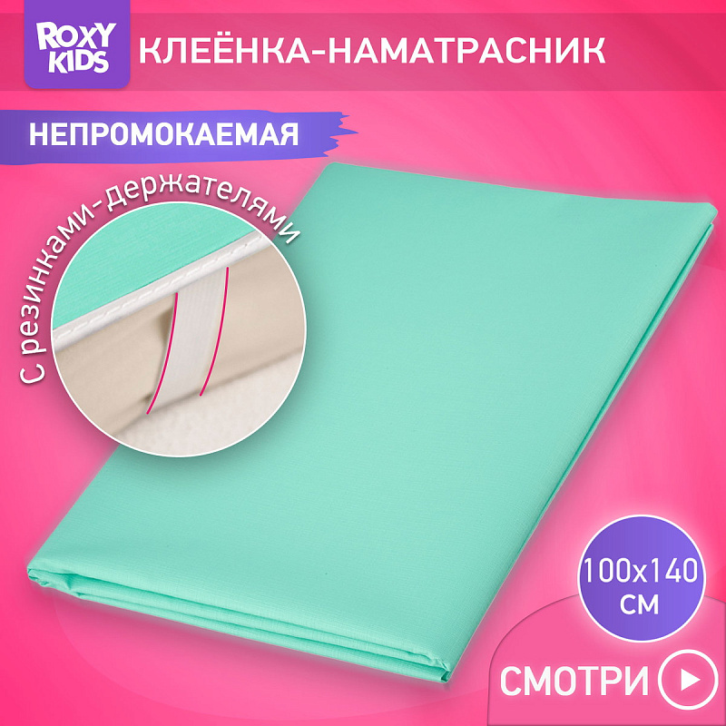 Клеёнка подкладная Roxy-Kids с ПВХ покрытием и резинками-держателями 100*140 см R-0079 бирюзоваяНет оценокХарактеристики