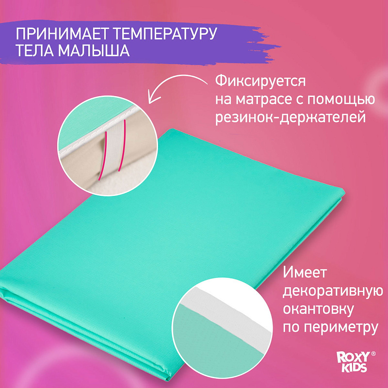 Клеёнка подкладная Roxy-Kids с ПВХ покрытием и резинками-держателями 100*140 см R-0079 бирюзовая