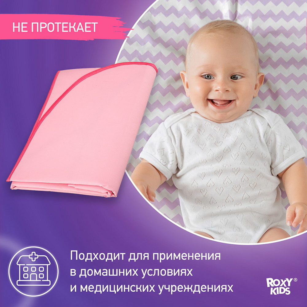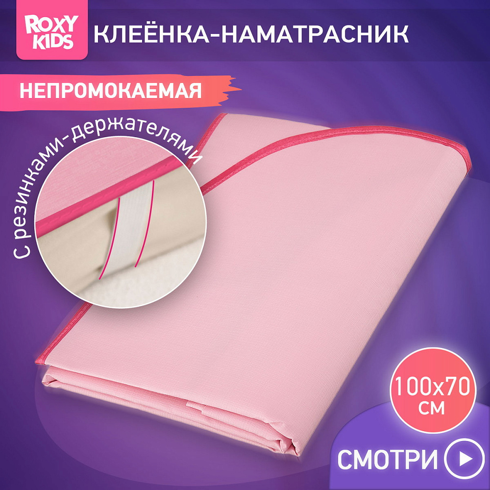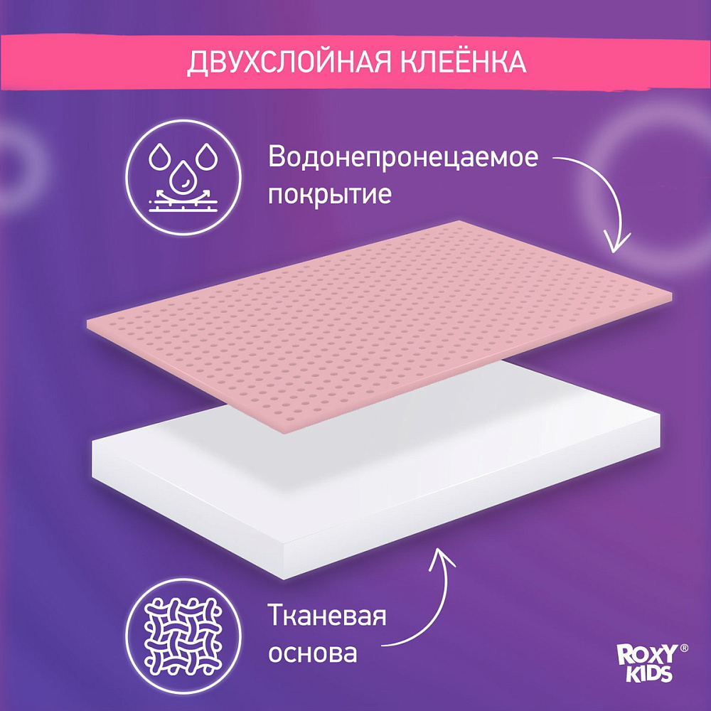 Клеёнка подкладная Roxy-Kids с ПВХ покрытием и резинками-держателями 70*100 см R-0066 розоваяНет оценокХарактеристики