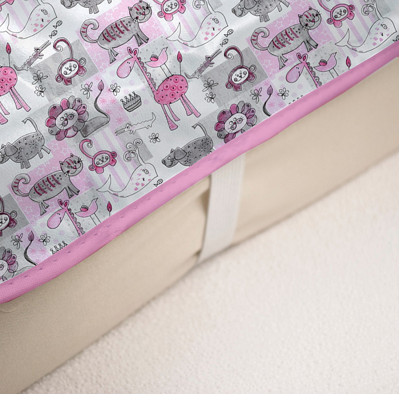 Клеёнка-наматрасник Roxy-Kids с резинками-держателями ZOO 70*100 см R-0076 серо-розовая