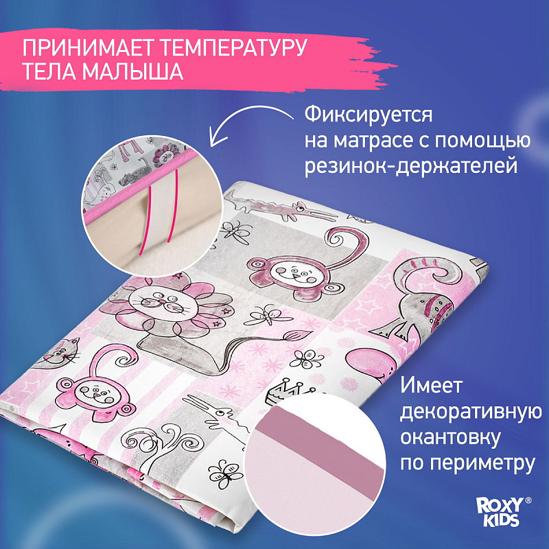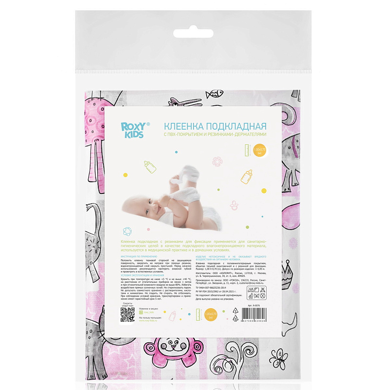 Клеёнка-наматрасник Roxy-Kids с резинками-держателями ZOO 70*100 см R-0076 серо-розоваяНет оценокХарактеристики