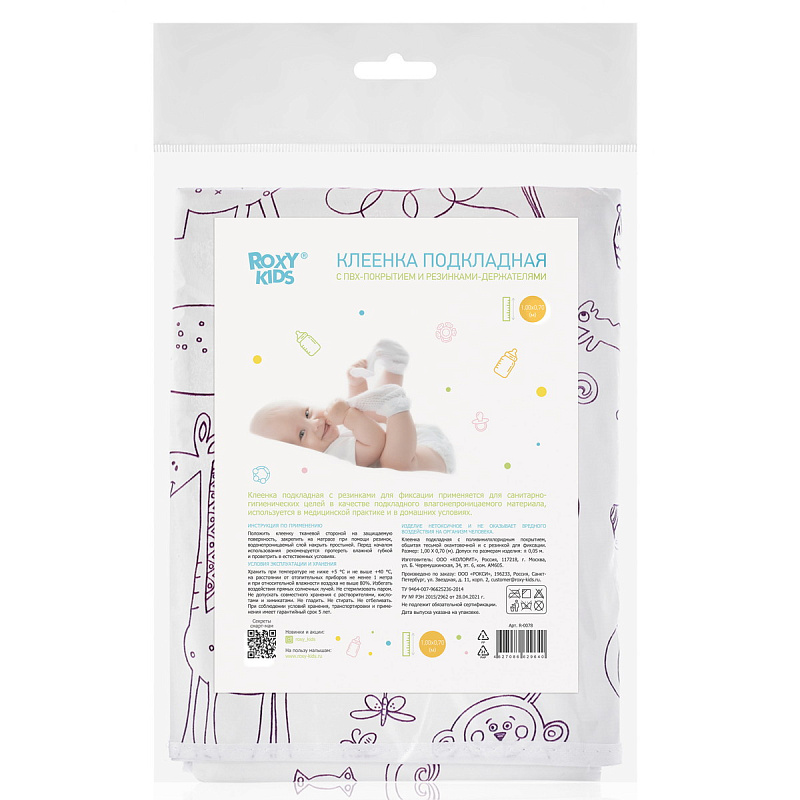Клеёнка-наматрасник Roxy-Kids с резинками-держателями ZOO 70*100 см R-0078 белая с принтом