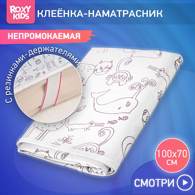 Клеёнка-наматрасник Roxy-Kids с резинками-держателями ZOO 70*100 см R-0078 белая с принтомНет оценокХарактеристики