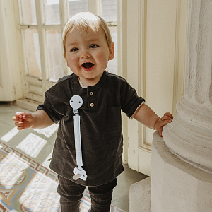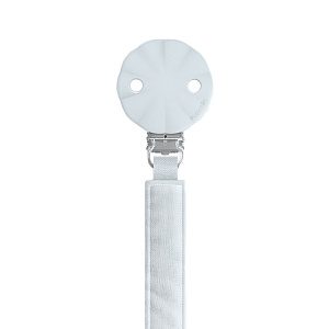 - Крепится к одежде с помощью прищепки-держателя, к пустышке —силиконовым кольцом