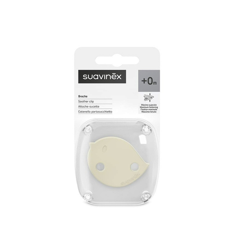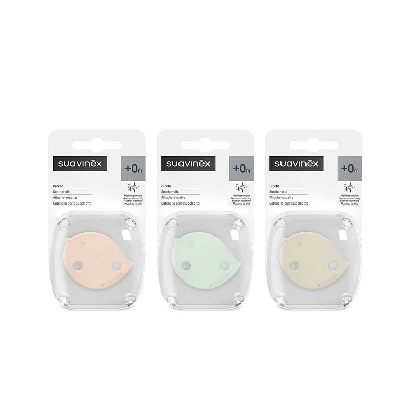 Клипса для пустышки Suavinex Birdies - не просто эффектное дополнение к соске, а полезный аксессуар. Благодаря миниатюрной клипсе, пустышка не потеряется и всегда будет под рукой. Модель состоит непосредственно из самой клипсы (на прищепке), цепочки и кольца (карабина). К соске она крепится при помощи кольца, а к одежде (сумке, кроватке) - за счет прищепки. Клипса легко пристегивается и отстегивается, при этом прочно держится. Благодаря гибкой цепочке аксессуар не сковывает движений малыша.