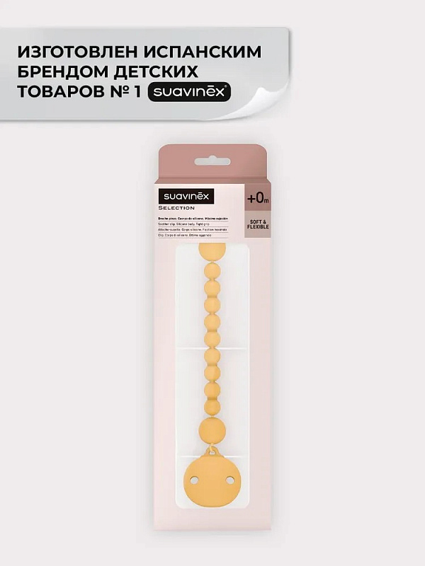 Клипса с цепочкой Suavinex для крепления соски-пустышки к одежде 401520 MUSTARD