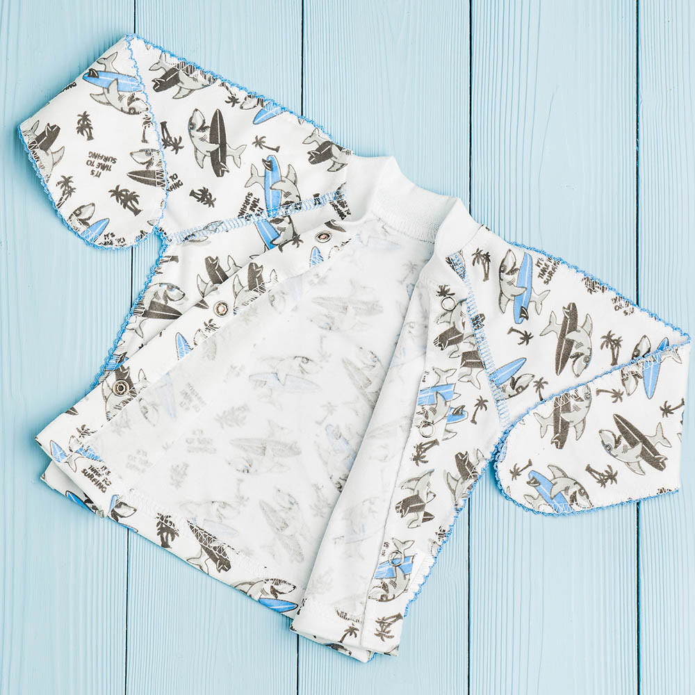 Кофточка для малыша выполнена из мягкого трикотажного материала. Модель с длинными рукавами, украшена милым рисунком. Малышу будет комфортно и удобно благодаря натуральной дышащей ткани. Кофточку легко надеть благодаря кнопкам спереди, а наружные швы не доставят неудобств при носке.