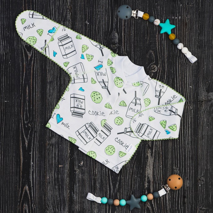 Детская кофточка с длинными рукавами украшена милым рисунком. Малышу будет комфортно и удобно благодаря натуральной дышащей ткани. Модель легко надеть, а наружные швы не доставят неудобств при носке.