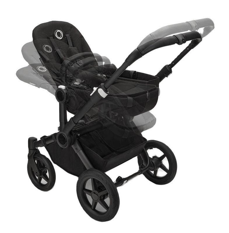 У вас и ваших детей всегда будет контакт друг с другом благодаря уникальному дизайну коляски. Вы сможете установить сиденья как лицом к себе или к окружающему миру, так и лицом друг к другу. И ваши прогулки станут еще веселее. При необходимости вы всегда сможете легко трансформировать коляску Bugaboo Donkey 5 из одноместной в двухместную — всего в 3 простых движения. Кроме того, вы можете присоединить к шасси подножку для второго ребенка для прогулок даже с 3 детьми одновременно.