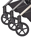 Легкая и маневренная рама коляски Carrello Ultra 2 в 1 компактно складывается по типу "книжки" вместе с прогулочным блоком, что облегчает хранение и транспортировку. Большие колеса с инновационными покрышками обеспечивают плавный ход по любой поверхности, эффективно амортизируя неровности дороги. Тип покрышек может варьироваться в зависимости от модификации коляски (например, надувные или гелевые), но во всех случаях они предназначены для обеспечения комфортной езды как для ребенка, так и для родителей.
