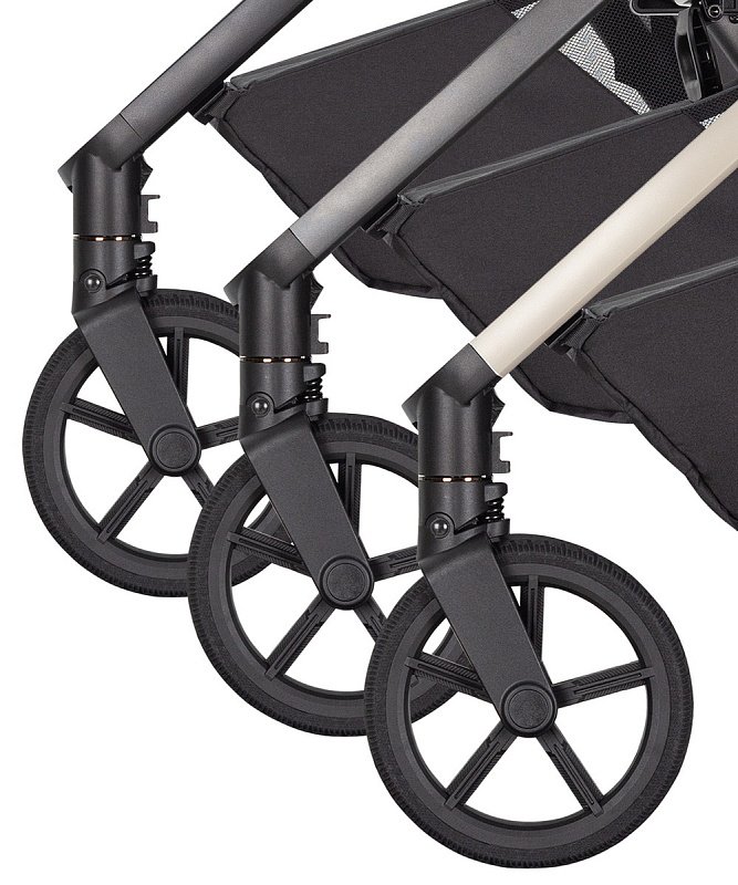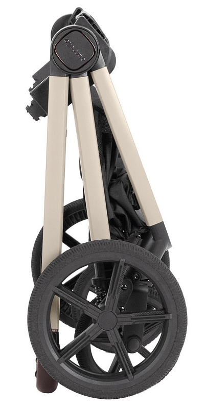 Легкая и маневренная рама коляски Carrello Ultra 2 в 1 компактно складывается по типу "книжки" вместе с прогулочным блоком, что облегчает хранение и транспортировку. Большие колеса с инновационными покрышками обеспечивают плавный ход по любой поверхности, эффективно амортизируя неровности дороги. Тип покрышек может варьироваться в зависимости от модификации коляски (например, надувные или гелевые), но во всех случаях они предназначены для обеспечения комфортной езды как для ребенка, так и для родителей.
