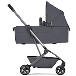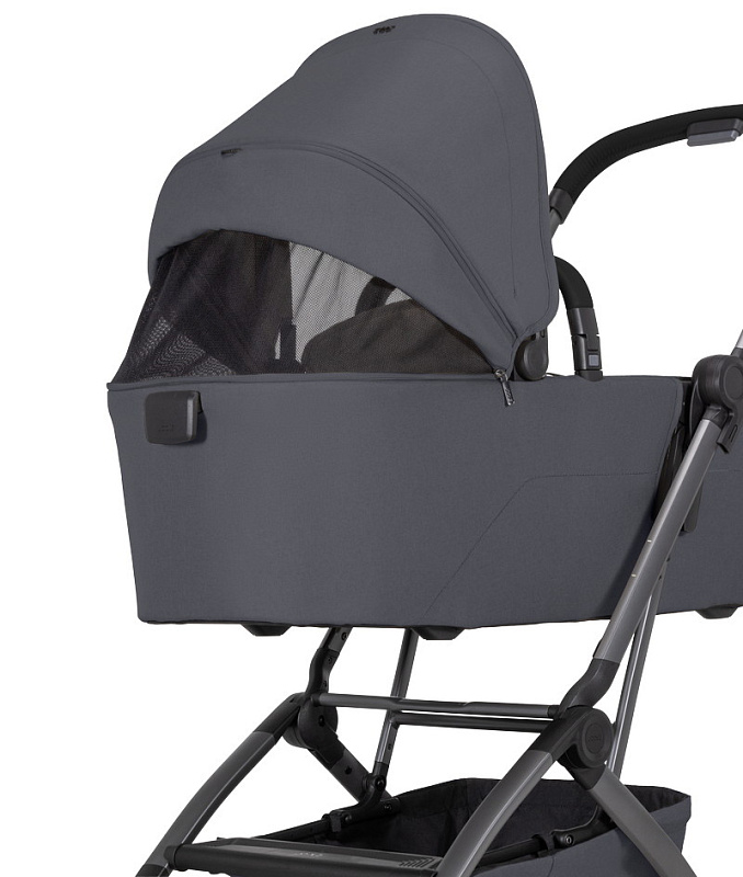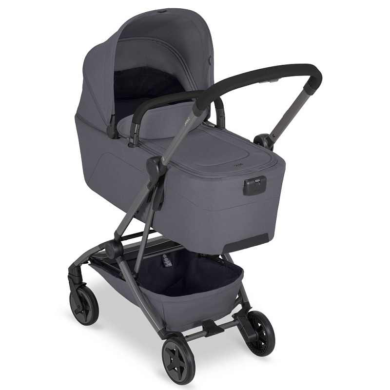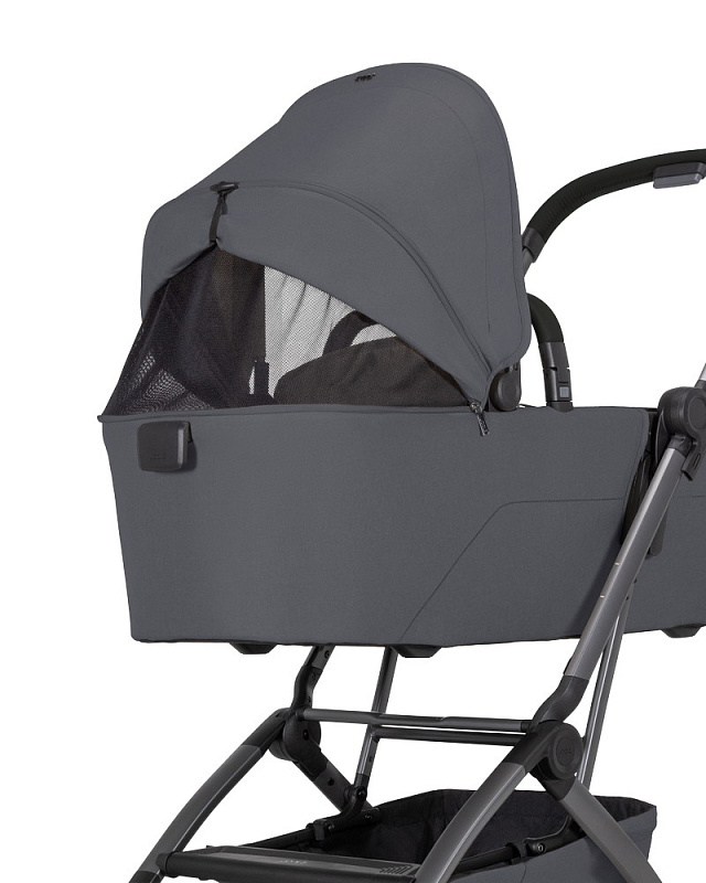 • На шасси можно установить люльку для новорожденного (приобретается отдельно). Она компактно складывается вместе с шасси коляски