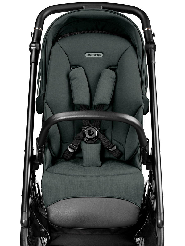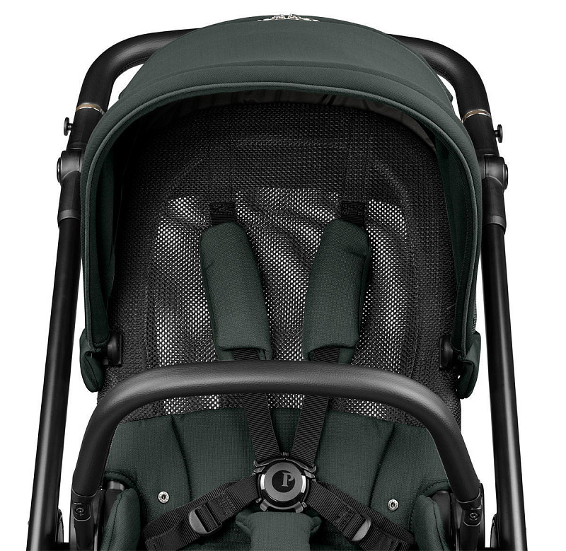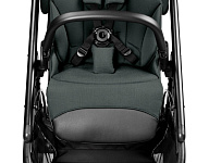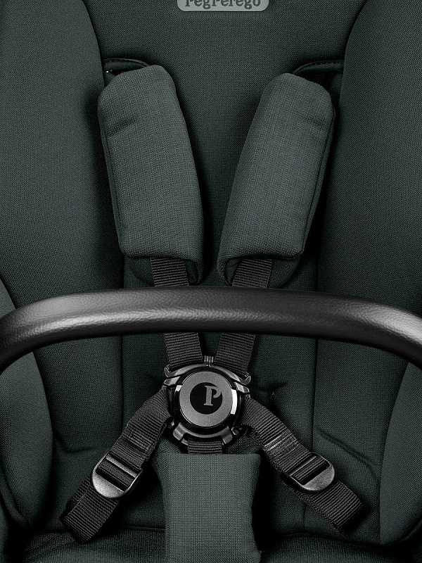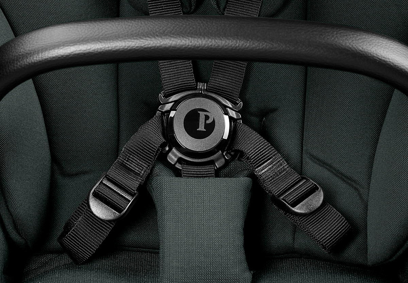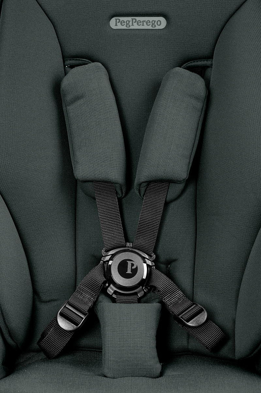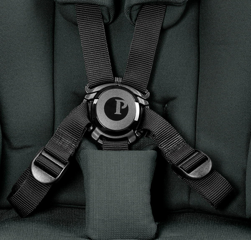 Просторное сиденье оснащено пятиточечными ремнями безопасности с мягкими накладками и системой защелкивания, расстегнуть которую могут только родители.