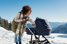 С помощью поворотных передних колёс можно легко маневрировать во время городских прогулок, а для комфортного путешествия по пересеченной местности их можно зафиксировать. Передние колёса с амортизацией компенсируют неровности дороги, поэтому вы можете открывать мир своему малышу, гуляя с ним и по брусчатым мостовым, и по размокшим грунтовым дорогам.