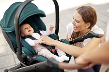 Устанавливается штатным ремнем или на поворотную базу Britax Roemer, а также совместима с большинством прогулочных колясок.