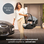 Устанавливается штатным ремнем или на поворотную базу Britax Roemer, а также совместима с большинством прогулочных колясок.