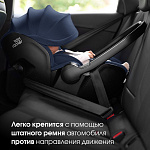 Устанавливается штатным ремнем или на поворотную базу Britax Roemer, а также совместима с большинством прогулочных колясок.