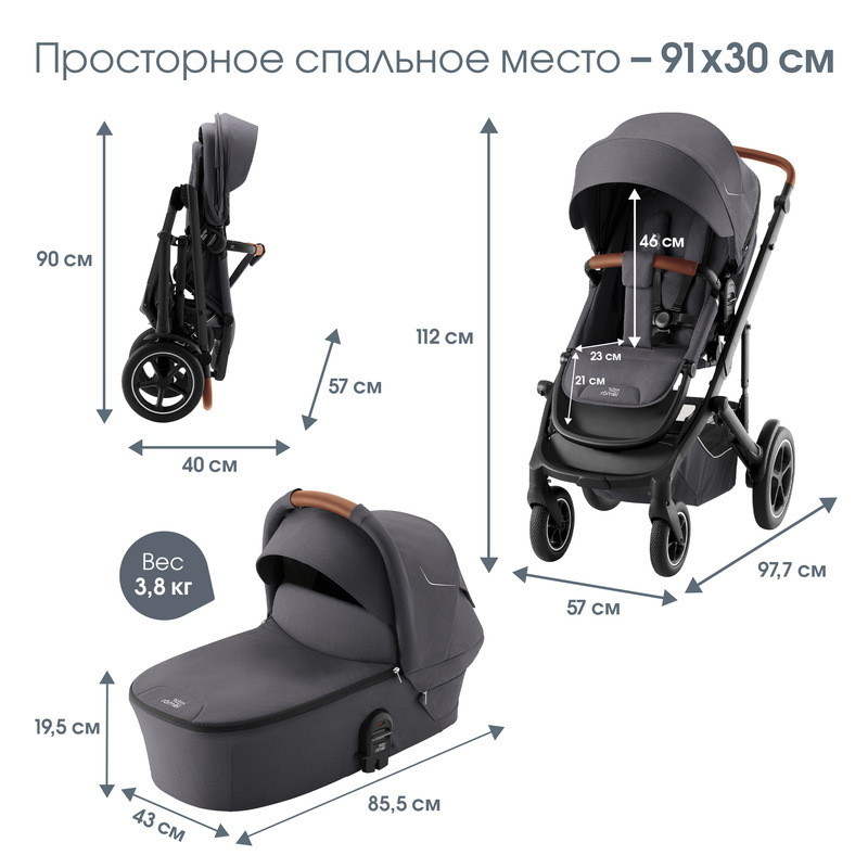 Коляска 3 в 1 Britax Roemer Smile 5Z и автокресло Baby-Safe PRO Style Teak Midnight Grey