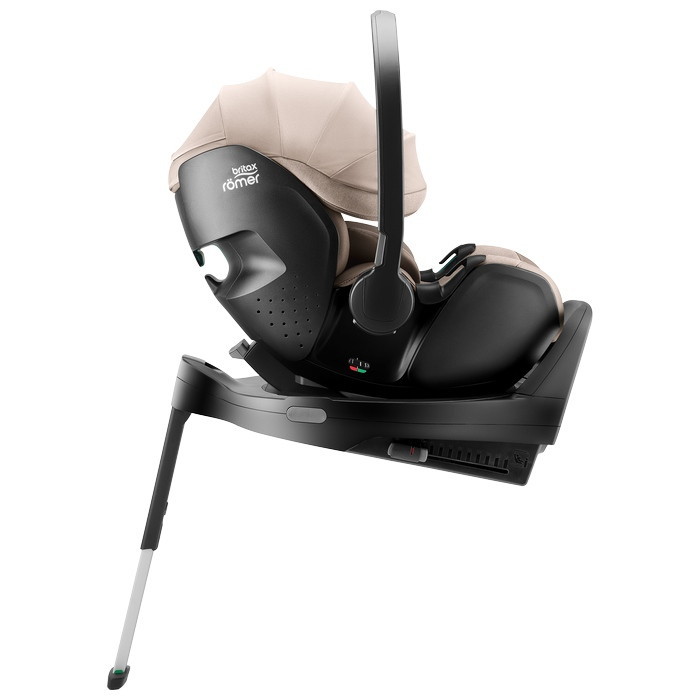 Устанавливается штатным ремнем или на поворотную базу Britax Roemer, а также совместима с большинством прогулочных колясок.
