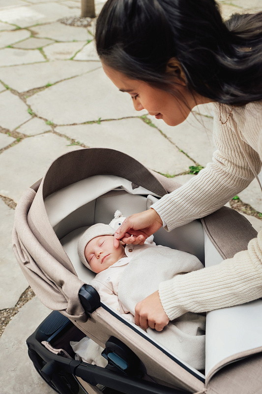 Благодаря стильной ручке из мягкой на ощупь эко-кожи, вы всегда будете в тренде. Ручку можно отрегулировать под рост взрослого, чтобы любой член семьи мог прогуляться с этой стильной коляской, не пренебрегая комфортом.
